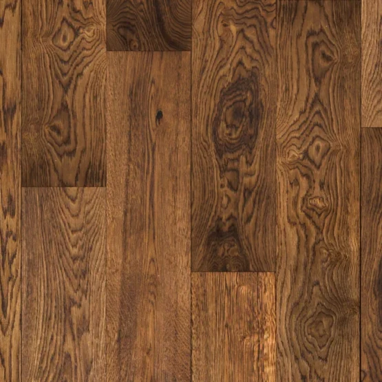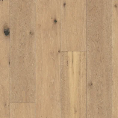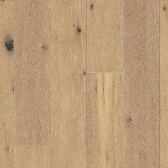 Seine European Oak engineered flooring features 7½″ planks with a hand-sculpted, lightly wire-brushed texture and matte hard wax oil finish for a natural, artisanal look. Its durable construction allows for glue, nail, or floating installation, combining elegance with lasting performance.